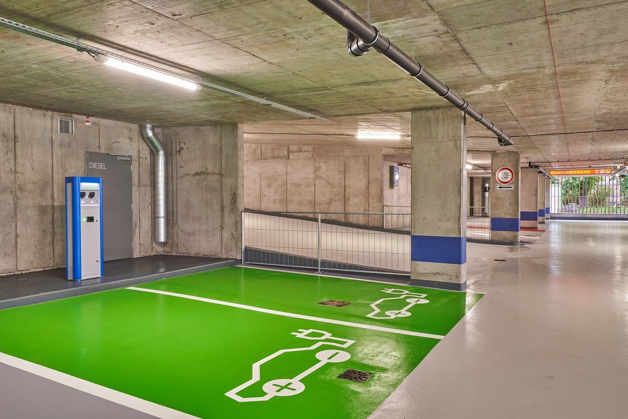 Uvnitř je k dispozici 284 parkovacích míst a nechybí ani dobíjecí stanice pro elektromobily. Parkovací dům je řešen tak, aby zkrátil čas hledání volného místa a zajistil plynulý provoz – ideální pro obyvatele, návštěvníky i turisty.